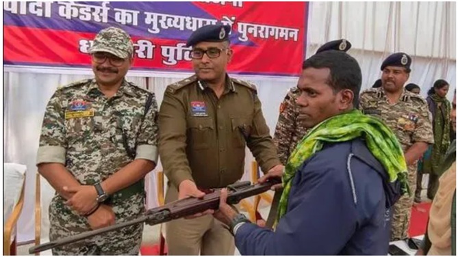 કેડરોએ બે ઇન્સાસ રાઇફલ, બે જીન્ઇ, એક કાર્બાઇન અને એક મઝલ-લોડિંગ બંદૂક સહિત અનેક હથિયારો પણ સમર્પણ કર્યા.