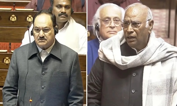 લોકસભામાં વડાપ્રધાન નરેન્દ્ર મોદીના ભાષણને અટકાવવાના એક દિવસ પછી, ગુરુવારે રાજ્યસભામાં ગરમાગરમ માહોલ જાેવા મળ્યો, જેમાં વિપક્ષના નેતા મલ્લિકાર્જુન ખડગે અને કેન્દ્રીય મંત્રી જેપી નડ્ડા વચ્ચે સંસદીય પ્રક્રિયા અંગે ઉગ્ર બોલાચાલી થઈ. ખડગેએ સંસદમાં રાષ્ટ્રીય હિતના મુદ્દાઓ પર બોલવા પર પ્રતિબંધો ગણાવ્યા બાદ વાંધો ઉઠાવ્યો ત્યારે બંને નેતાઓ વચ્ચે ઉગ્ર બોલાચાલી શરૂ થઈ.