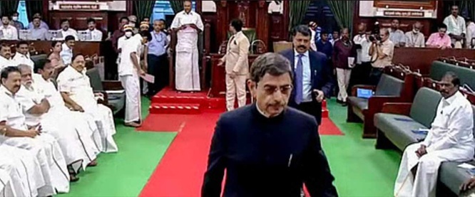 તમિલનાડુના રાજ્યપાલ આર.એન. રવિએ મંગળવારે ફરી એકવાર તેમનું ભાષણ વાંચવાનો ઇનકાર કર્યો અને વર્ષના પ્રથમ સત્રના શરૂઆતના દિવસે પરંપરાગત ભાષણ આપ્યા વિના વિધાનસભામાંથી બહાર નીકળી ગયા, જેના કારણે રાજભવન અને ગૃહ વચ્ચે તીવ્ર ટકરાવ થયો.