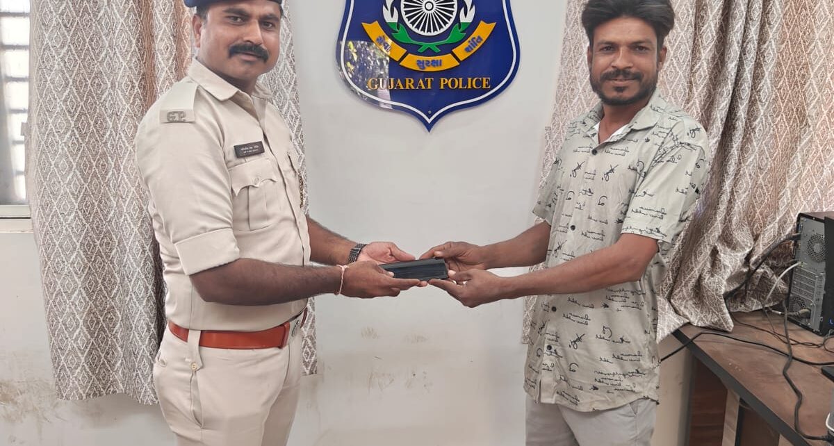 તેરા તુજકો અર્પણ”કાર્યક્રમ અંતર્ગત અમરેલી તાલુકા પોલીસ સ્ટેશનના અરજદારનો ગુમ થયેલ મોબાઇલ ફોન શોધી અરજદારશ્રીને પરત કરતી અમરેલી તાલુકા પોલીસટીમ