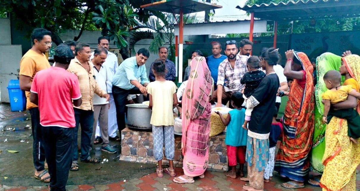 મેંદરડા : મેધ તાંડવ બાદ વરસાદ થી પ્રભાવિત લોકો માટે ભોજન વ્યવસ્થા કરવામાં આવેલ