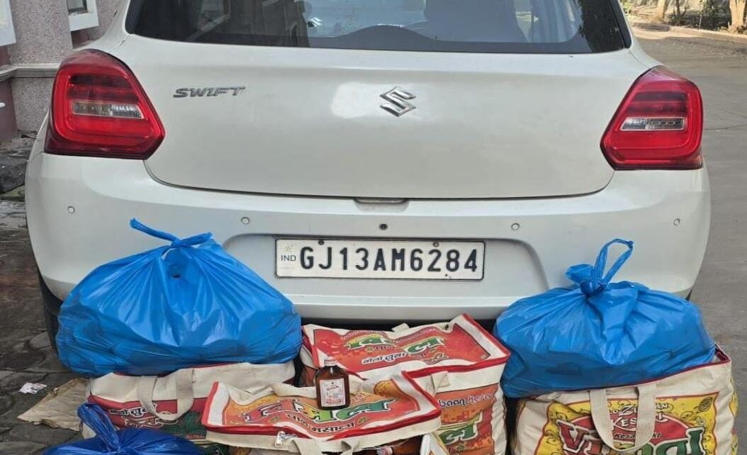 રાજકોટ ખેરવા ગામની સીમમાં ખુલ્લા પટમાંથી સ્વીફટ કારમાંથી ઇંગ્લીશ દારૂનો જથ્થો પકડી પાડતી PCB શાખા.
