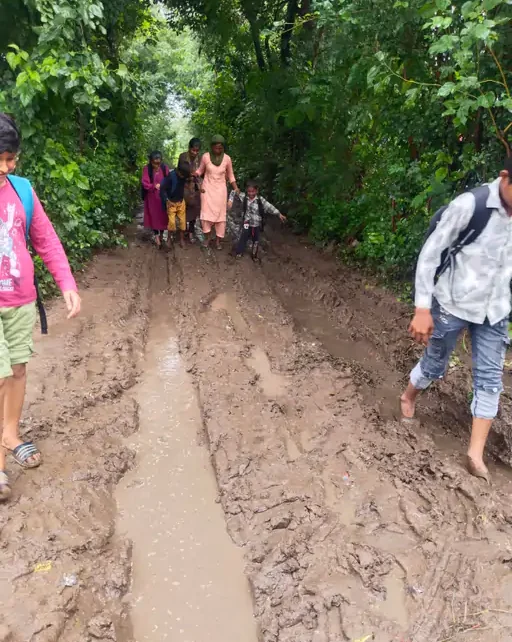 દંતાલીમાં રસ્તા પર કાદવ કિચડ થઇ જતાં બાળકો સ્કૂલે જઇ શકતા નથી