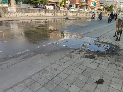 કિડની હોસ્પિટલથી પારસ સર્કલના માર્ગ પર ગટરના ગંદા પાણી રેલાયા