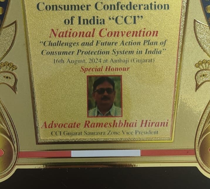 ગત તારીખ ૧૬ ઓગસ્ટના અંબાજી માતાના સાનિધ્યમાં કન્ઝ્યુમર કોન્ફડરેશન ઓફ ઈન્ડિયા દ્વારા નેશનલ કન્વેન્શનનું આયોજન કરવામાં આવેલ જેમાં દેશના જુદા જુદા ૨૫ રાજ્યોના પ્રતિનિધિઓ હાજર રહ્યા હતા. આ બેઠકમાં સાવરકુંડલા ગ્રાહક સુરક્ષા મંડળના પ્રમુખ રમેશભાઈ હીરાણીને સી. સી. આઈ. ગુજરાત સૌરાષ્ટ્ર ઝોનના વાઈસ પ્રેસિડેન્ટ તરીકે જવાબદારી મળેલ જે બદલ રમેશભાઈ હિરાણીને તેમના મિત્રો શુભેચ્છકો દ્વારા […]