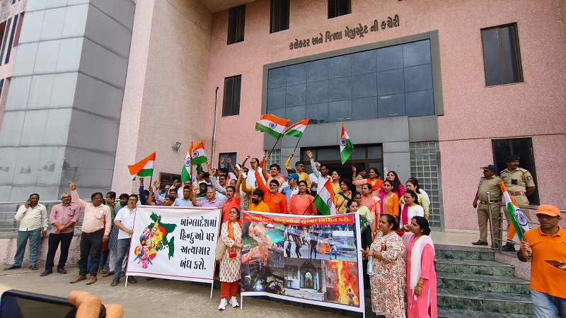 ભરૂચના બાયપાસ રોડ પરની સોસાયટીઓના રહીશોનું બાંગ્લાદેશના હિન્દુઓ પર થતા અત્યાચારના વિરોધમાં આવેદન