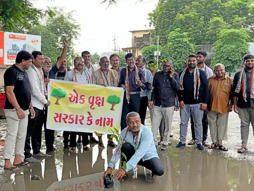 ધોરાજીમાં કોંગ્રેસનું રસ્તાના ખાડામાં વૃક્ષારોપણ