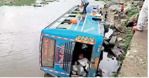 અંબાજી-આબુરોડ હાઇવે ઉપર સુરપગલા ગામ નજીક લકઝરી બસ નદીમાં ખાબકી:12 ને ઈજા