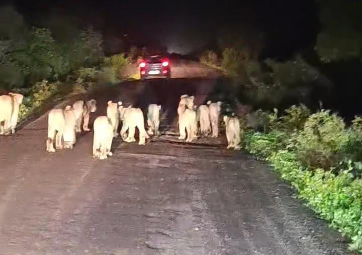 ગીરગઢડાના ખિલાવડ ગામનાં રસ્તા પર રાત્રીના એક સાથે 12 સિંહોનું પેટ્રોલિંગ…આ સિંહોનું ટોળુ જોઈ વાહન ચાલકો ચોકી ગ્યા…