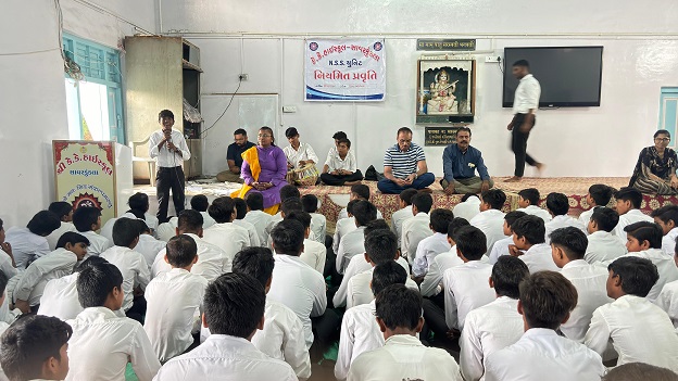 શ્રી કે.કે હાઈસ્કૂલ,સાવરકુંડલામાં ૧૭-૮-૨૪ શનિવારના રોજ સાંસ્કૃતિક કાર્યક્રમ અંતર્ગત કૃષ્ણ ભક્તિના ગીતો તથા ભાઈ-બહેનના હેતના ગીતોનો કાર્યક્રમ રાખવામાં આવ્યો હતો. આ કાર્યક્રમમાં એક વિદ્યાર્થીની બહેન તથા ચાર વિદ્યાર્થી ભાઈઓએ ઉત્સાહભેર ભાગ લીધેલ હતો. સમગ્ર વાતાવરણ કૃષ્ણ ભક્તિના રંગે રંગાઈ ગયું હતું. સર્વત્ર ભાઈ અને બહેનના પવિત્ર સંબંધ એવા રક્ષાબંધનનો માહોલ જોવા મળ્યો હતો. શિક્ષિકા વર્ષાબેન […]