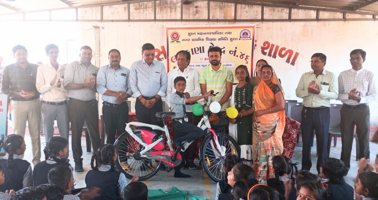 સુરતની લસકાણા કેન્દ્ર શાળામાં પ્રતિભાશાળી વિદ્યાર્થીઓને સાયકલ તથા સ્કૂલબેગ વિતરણનો કાર્યક્રમ યોજાયો