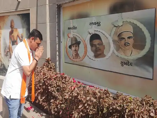 ભાવનગરના શહીદ સ્મારક ખાતે શહેર ભાજપ દ્વારા ભગતસિંહ, રાજગુરુ તથા સુખદેવને શ્રદ્ધાંજલિ અર્પણ કરાઈ
