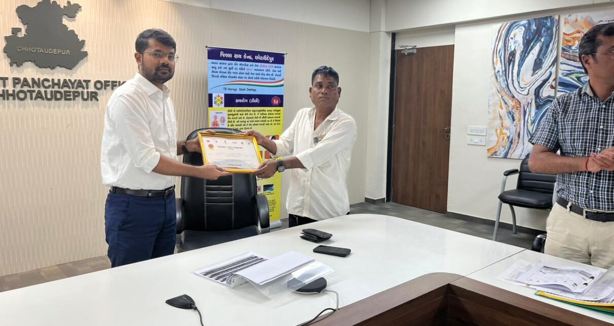 છોટાઉદેપુર જિલ્લા પંચાયતના કોન્ફરન્સ હોલ ખાતે ટીબી મુક્ત ગ્રામ પંચાયત માટે પ્રશસ્તિ પત્ર એનાયત કાર્યક્રમ યોજાયો