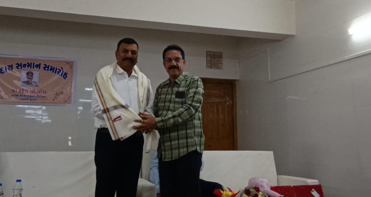 અમરેલી ચેમ્બર ઓફ કોમર્સના મહામંત્રી રાજુભાઇ શીંગાળાએ ડી.વાય.એસ.પી.વોરાને શાલ ઓઢાડી ભાવભર્યું વિદાયમાન આપ્યુ