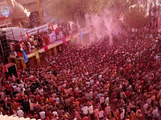 રંગોત્સવમાં સપ્તધનુષ્યના રંગની થીમ પર સાત પ્રકારના 51,000 કિલો રંગોના ઉપયોગ; મંદિર પ્રાંગણમાં 60 ફૂટ જેટલા ઊંચાઈ સુધી કલર બ્લાસ્ટ કરી હોળી ઉજવાશે