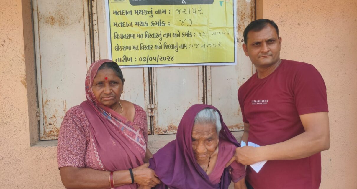 જોડિયા તાલુકાના જસાપર ગામે લોકસભા 24 ની ચૂંટણી માં ગામના મોટી 103 વર્ષ ઉમરના બે વડીલ માજીઓ એ પોતાનો મત આપવા માટે મતદાન મથક સુધી લય જવામાં આવેલ