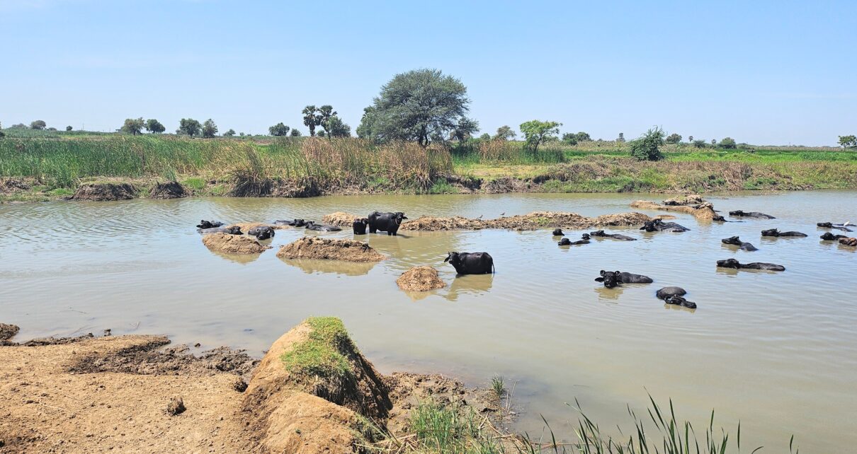 મનુષ્યો પાસે તો ગરમીથી રાહત મેળવવાનાં અવનવા ઉપાયો ઉપલબ્ધ છે પરંતુ બિચારા મૂંગા પ્રાણીઓ આ મામલે લાચાર હોય છે. આમ છતાં કુદરત તો સૌનો હોય છે એમ તેણે તસવીરમાં દેખાતી ભેંસો માટે અલાયદી સગવડ કરી હોય એવું પ્રતિત થાય છે. ઓલપાડથી મંદરોઇ જતાં માર્ગે અસનાડ ગામની સીમ નજીક કુદરતી સ્નાનાગારમાં ગરમીને માત આપવા પ્રયત્નશીલ ભેંસનું […]