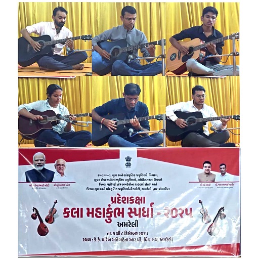 અમરેલી ખાતે ગુજરાત સરકાર દ્વારા યોજાયેલ કલામહાકુંભની સૌરાષ્ટ્ર પ્રદેશ કક્ષામાં ગિટાર સ્પર્ધા