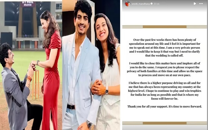 સ્મૃતિ મંધાનાએ પલાશ મુછલ સાથેના લગ્ન રદ કર્યા, બંને પરિવારો માટે ગોપનીયતાની વિનંતી કરી