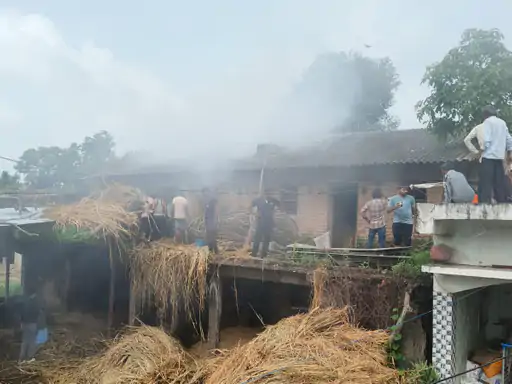 ઘરમાં સંગ્રહિત ઉસેલ અને પૂળા સળગી ગયા, ફાયર વિભાગે 4 કલાકે આગ કાબૂમાં લીધી