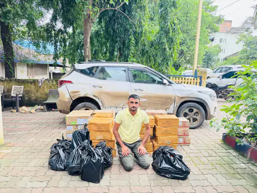 સફેદ કિઆ સેલ્ટોસ કારમાંથી 12.16લાખથી વધુનો ઈંગ્લીશ દારૂ મુદામાલ સાથે 1ની ધરપકડ