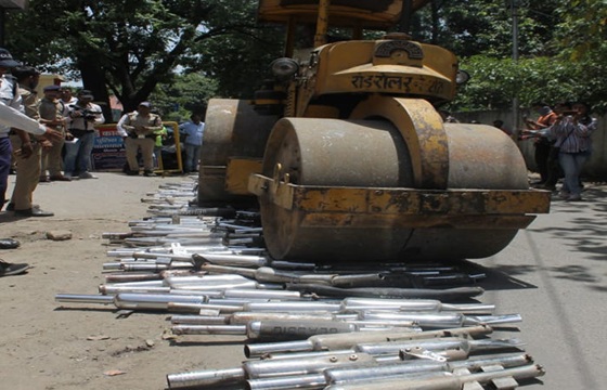વડોદરા શહેર ટ્રાફિક પોલીસ દ્વારા મોડીફાઇ કરેલા ૧૦૮ સાઇલેન્સરોનો નાશ કરાયો