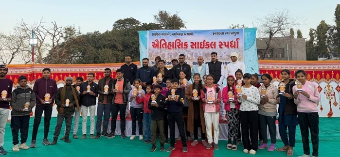 “સાયકલ ચલાવો પર્યાવરણ બચાવો” સાવરકુંડલામાં સાયકલોથોન ત્રણ કિલોમીટરની સ્પર્ધામાં પાંચ કેટેગરીમાં આવેલ પ્રથમ ત્રણ વિજેતાઓને સન્માનિત કરાયા સાવરકુંડલા શહેરમાં ભવ્ય સાયકલોથોનનું આયોજન કરવામાં આવ્યું હતું, જેમાં અંદાજે ૧૦૦૦થી વધુ સાયકલ સવારોએ ઉત્સાહપૂર્વક ભાગ લીધો હતો. વહેલી સવારે મહુવા રોડ ઉપર સાયકલ સવારો ઉમટી પડતા શહેરમાં ઉત્સવમય માહોલ સર્જાયો હતો. આ સાયકલોથોનમાં કુલ ૫ કેટેગરીમાં ત્રણ […]