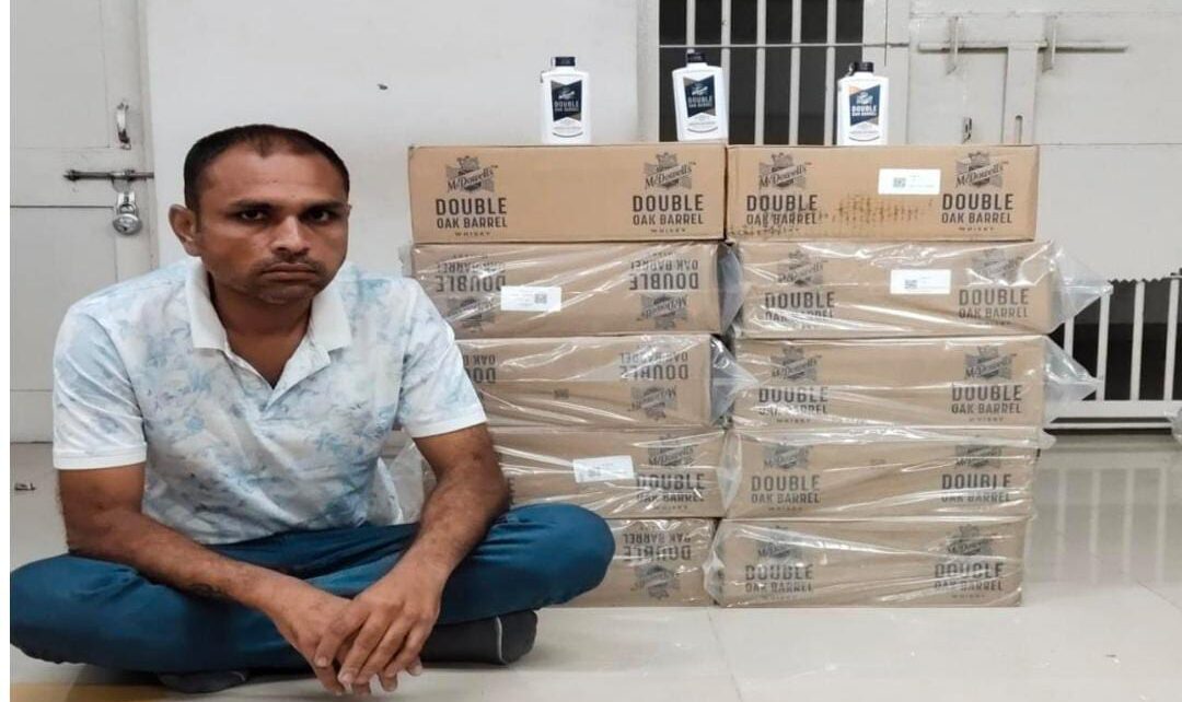રાજકોટ મવડી પ્લોટ મકાનમાંથી ઇંગ્લીશ દારૂના જથ્થા સાથે એક ઇસમને પકડી પાડતી PCB શાખા.