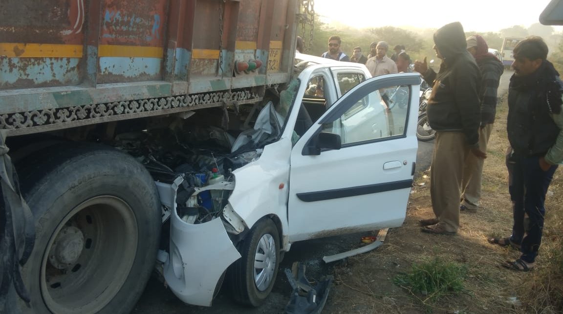 ખાંભા ના નાનુડી નજીક લાપળા ડુંગર પાસે અકસ્માત.. .. સિમેન્ટ ભરેલા બંધ ટ્રક પાછળ ફોરવહીલ ઘુસી જતા