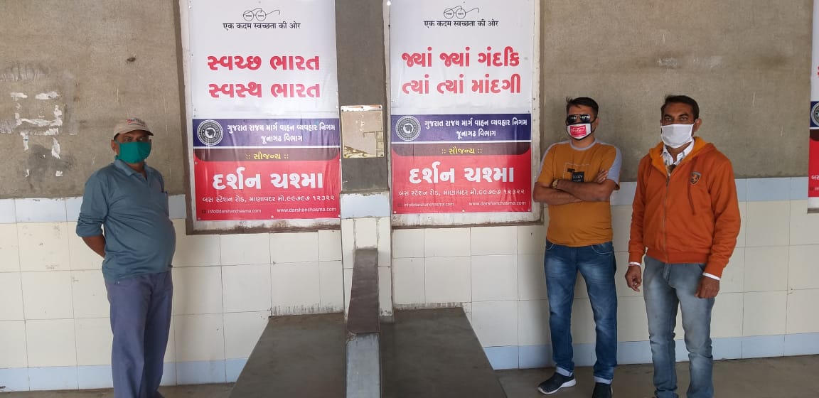માણાવદરના દર્શન ચશ્મા ગૃપ દ્વારા *માણાવદરના બસ સ્ટેશનમાં સ્વચ્છતાના બેનર તથા સૂત્રો દ્રારા લોકજાગૃતિ અભિયાન*
