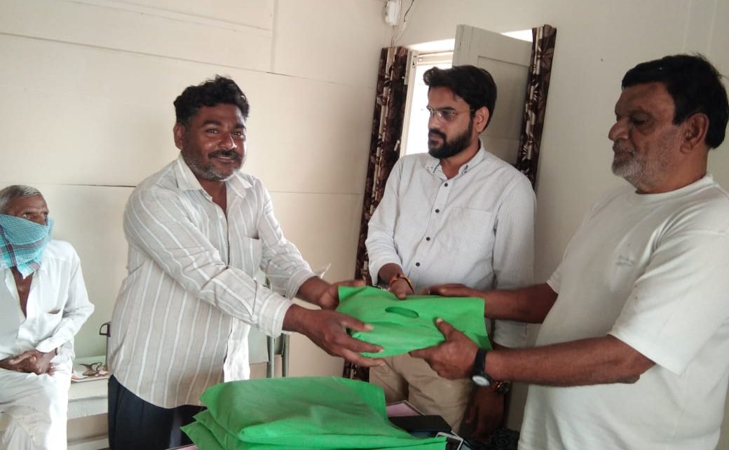 ગ્રામ પંચાયત મોટીકુકાવાવ દ્વારા સફાઈ કર્મચારીઓને ભેટ આપતા સરપંચ શ્રી સુભાષભાઈ ભગત મંત્રીશ્રી