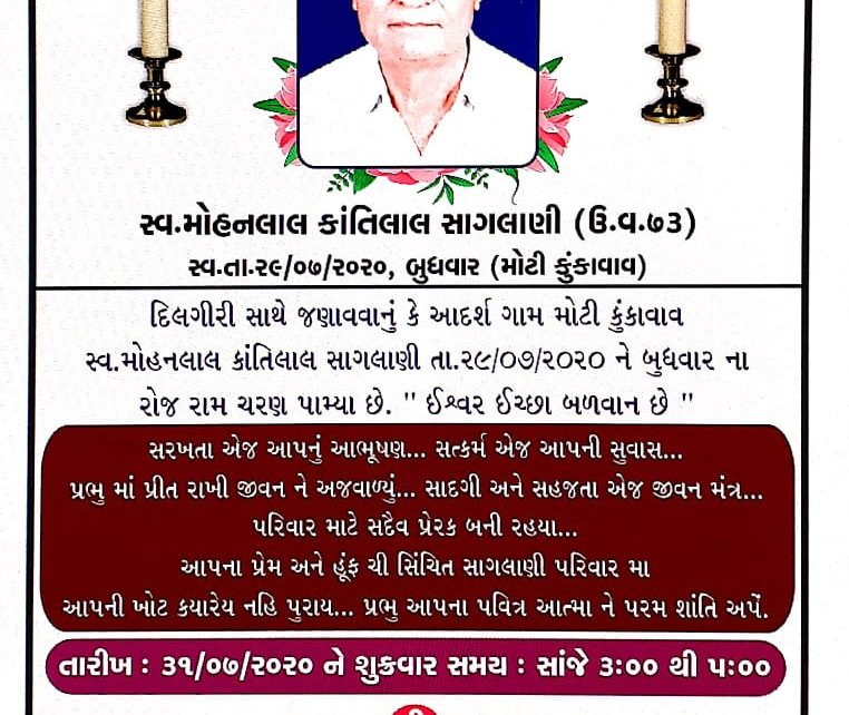 ઠા.મોહનલાલ કાંતિલાલ સાગલાણી મોટી કુંકાવાવ ઉ.73 તે