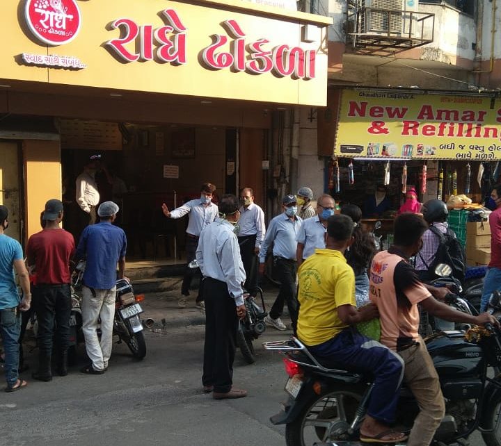 સુરતમાં આવેલી નાનપુરા વિસ્તારમાં રાધે ઢોકળા નામની દુકાન માં સુરત મહાનગરપાલિકા દ્વારા દંડ ફટકારવામાં આવ્યો.