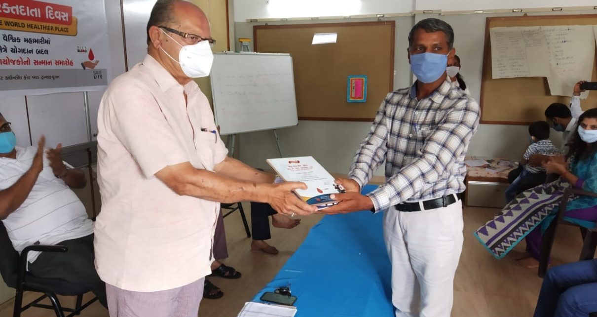 ૧૪મી જુન રક્તદાતા દિવસ નિમિતે ભાવનગર બ્લડ બેન્ક દ્રારા યોજાયેલ શ્રેષ્ઠ ૧૪ રક્તદાન આયોજક સંસ્થાઓને સન્માનવાના કાર્યક્રમમાં શ્રી