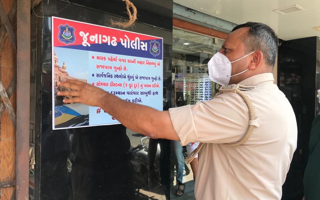 જૂનગઢ પોલીસ દ્વારા જાગૃતિ લાવવા ખરીદી કરવા આવતા લોકોને સાવચેત કરવા